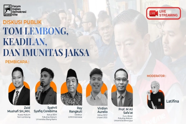 “Seperti yang kita ketahui, imunitas jaksa dalam UU Kejaksaan saat ini menjadi sorotan. Di kalangan mahasiswa, hal ini juga menjadi bahan diskusi, terutama terkait Pasal 8 Ayat 5 yang menyatakan bahwa pemanggilan, pemeriksaan, hingga penahanan jaksa hanya dapat dilakukan dengan persetujuan Jaksa Agung,” ujar Syahril dalam Diskusi Publik bertema ‘Tom Lembong, Keadilan, dan Imunitas Jaksa’ yang digelar Chanel Youtube @officialSENTER secara daring pada, Jumat (14/3/2025).