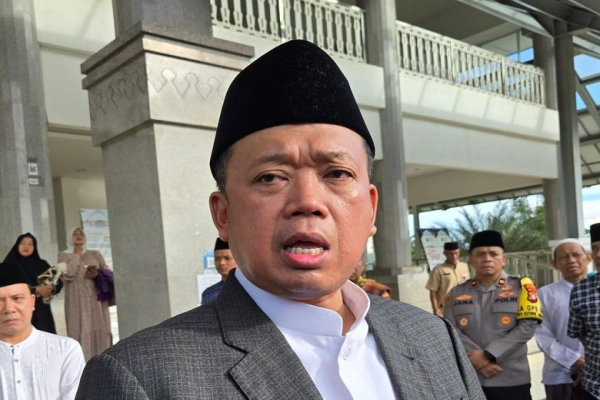 Menteri Agraria dan Tata Ruang/Kepala Badan Pertanahan Nasional (ATR/BPN) Nusron Wahid di Masjid Kiai Haji Hasyim Asy'ari, Jakarta, Senin (31/3/2025).