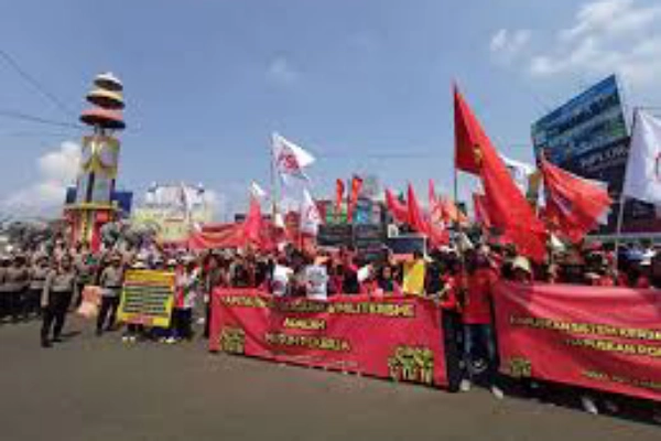 Lampung, CINEWS.ID – Pada peringatan Hari Buruh Internasional atau May Day, ratusan buruh di Lampung yang tergabung dalam Pusat Perjuangan Rakyat Lampung (PPRL) menggelar aksi unjuk rasa di Tugu Adipura, Bandar Lampung pada, Kamis (1/5/2025). Dalam aksi itu, massa buruh mengusung tujuh poin tuntutan utama, salah satu poin tuntutan utamanya adalah penerapan sistem upah layak nasional.