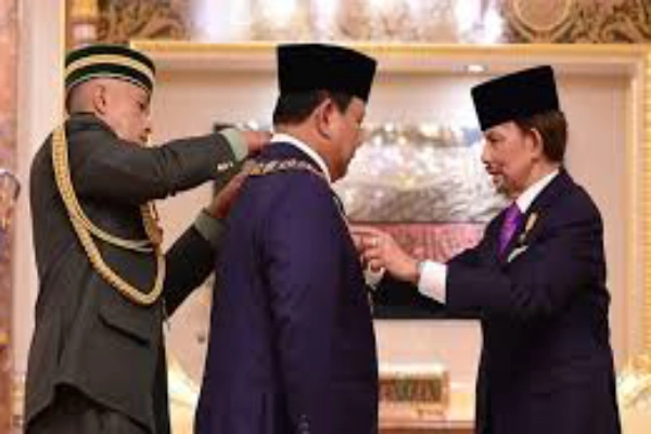 Bandar Sri Begawan, CINEWS.ID – Sultan Brunei Darussalam Hassanal Bolkiah menyematkan tanda bintang kebesaran tertinggi Brunei Darussalam “Darjah Kerabat Laila Utama Yang Amat Dihormati” (D. K.) kepada Presiden Prabowo Subianto.
