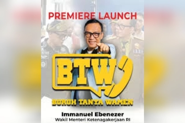 “Ini program murah, program digital. Nggak pakai anggaran negara, nggak pakai APBN. Cuma modal Rp100.000 isi kuota,” kata Noel dalam agenda peluncuran layanan BTW di Kantor Kemnaker, Senin (19/5/2025).