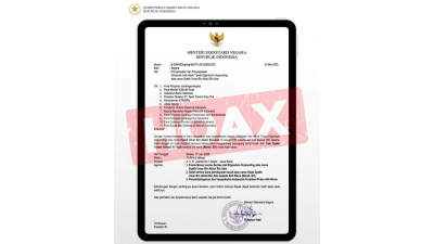 Surat yang beredar luas ini, mengatasnamakan Menteri Sekretaris Negara Prasetyo Hadi dan menggunakan logo Kemensetneg, dinyatakan sebagai hoaks atau tidak benar.