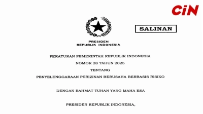 Jakarta, CINEWS.ID – Presiden Prabowo Subianto telah meneken beleid Peraturan Pemerintah (PP) Nomor 28 Tahun 2025 tentang Penyelenggaraan Perizinan Berusaha Berbasis Risiko (PBBR) pada 5 Juni 2025, dan berlaku saat aturan itu diundangkan.