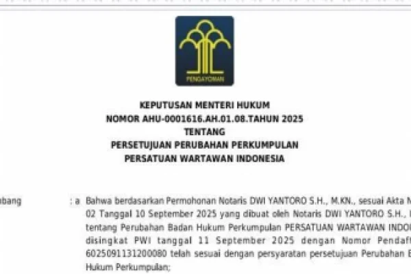 Jakarta, CINEWS.ID – Organisasi Persatuan Wartawan Indonesia (PWI) resmi kembali terdaftar di Kementerian Hukum (Kemenkum) RI dengan Nomor AHU-0001616.AH.01.08. Tahun 2025. Berdasarkan informasi yang diterima CINEWS, penerbitan AHU PWI itu…