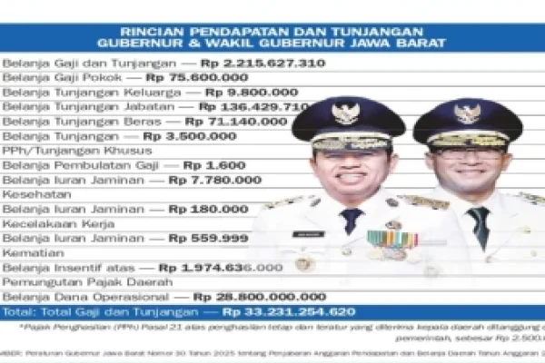 Bandung, CINEWS.ID – Anggaran tunjangan dan dana operasional yang fantastis untuk Gubernur dan Wakil Gubernur Jawa Barat (Jabar), Dedi Mulyadi dan Erwan Setiawan menjadi sorotan publik terutama di media sosial…